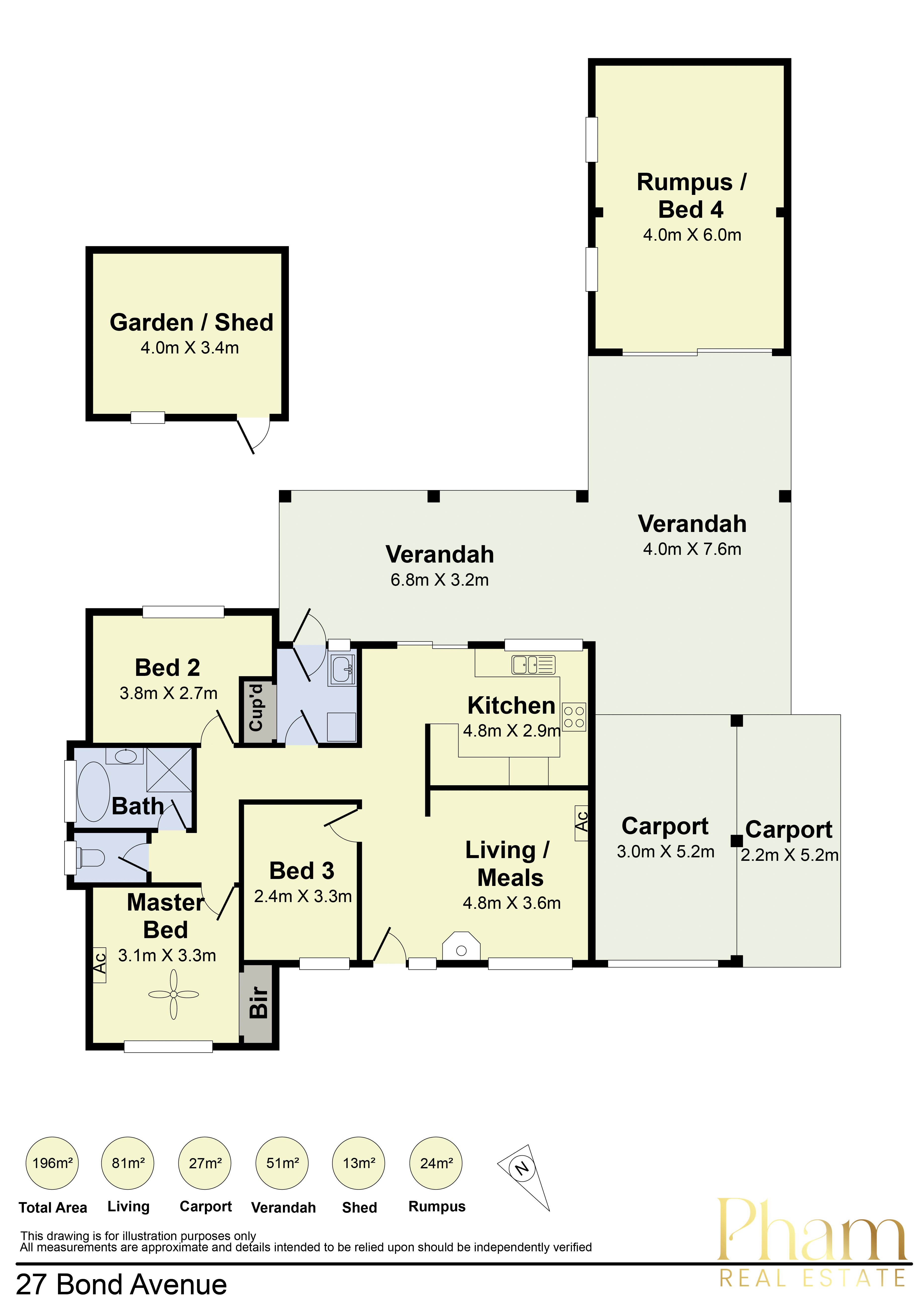 Step outside to discover a haven of relaxation and entertainment, where a spacious veranda beckons for al fresco gatherings and lazy Sunday afternoons. A bonus rumpus room at the rear of the property offers endless possibilities, whether as a home office, fourth bedroom, or entertainment zone for family and friends.